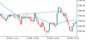 MT5 defaults to opening and closing positions with indicator arrows and connecting lines for opening and closing positions, as shown in the figure: