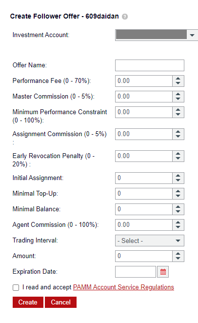 팔로어 계정 보유자가 되려면 사용자는 "클라이언트 계정"에 충분한 자금이 있는 경우 PAMM 계정 중 하나에서 마스터 제안을 수락해야 합니다. 제안을 수락하면 "고객 계정"에서 "팔로어 계정"으로 자금을 이동하도록 요청합니다.